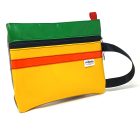 Soy un bolso tipo clutch hecho con lonas recicladas que antes viajaron por el mundo y ahora están listas para acompañarte en tu día a día.